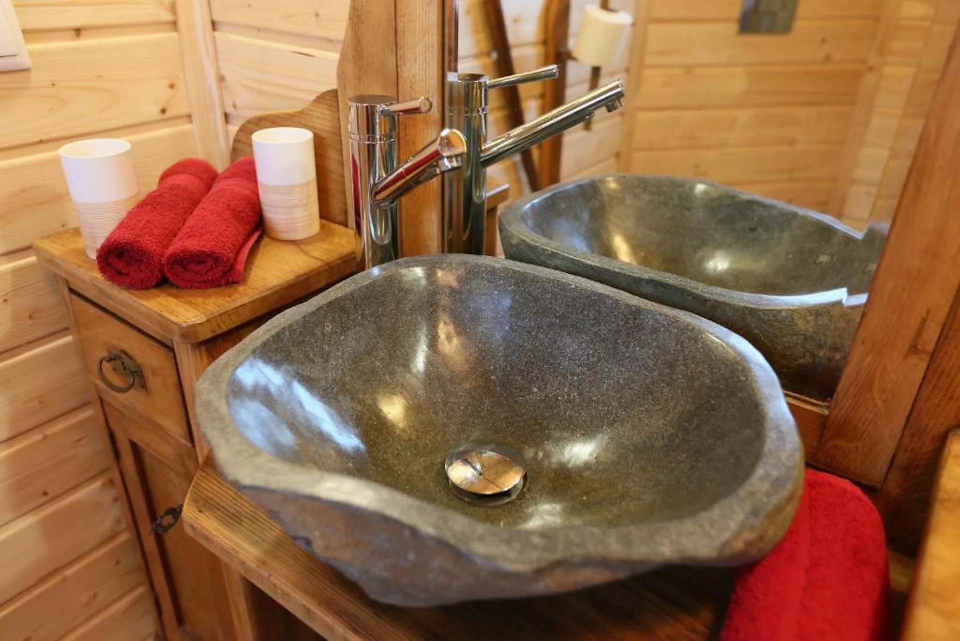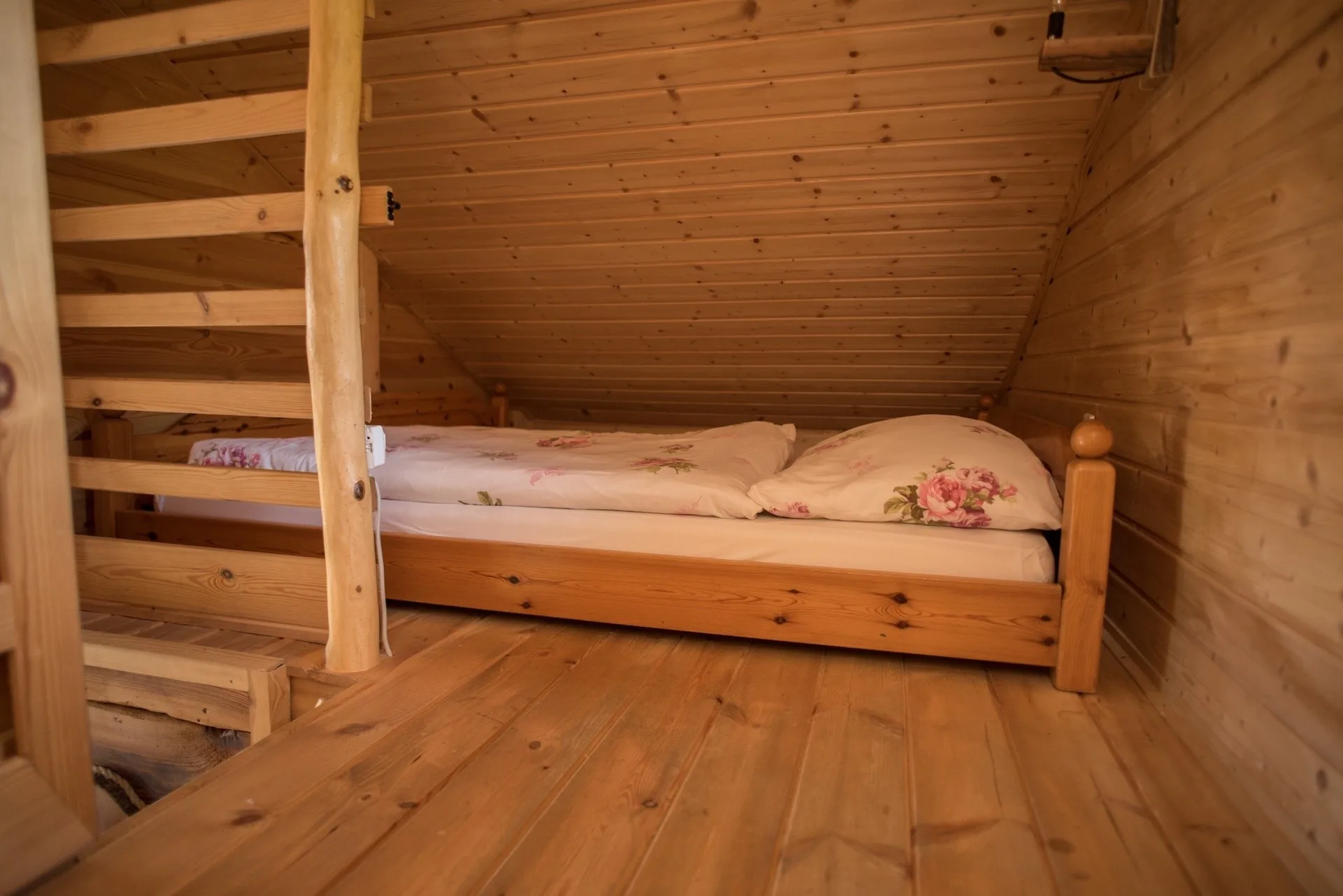 Das Chalet verfügt über ein gemütliches Schlafzimmer mit Doppelbett, ein eigenes Badezimmer sowie einen einladenden Wohnbereich. Über eine kleine Treppe gelangen Sie auf die Galerie, wo Ihnen neben einem weiteren Doppelbett auch ein Einzelbett zur Verfügung steht – von hier aus genießen Sie die beste Aussicht. Die geschmackvoll eingerichtete Küche ermöglicht es Ihnen, kleine Mahlzeiten unkompliziert zuzubereiten.